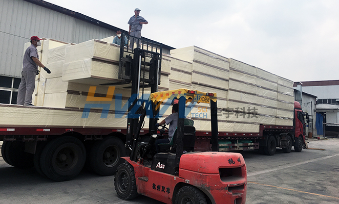 擁有國(guó)內(nèi)從歐洲全套引進(jìn)的柔性面材夾芯板連續(xù)生產(chǎn)線兩條。